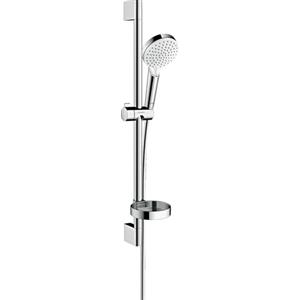 Hansgrohe Crometta Set Doccia Vario 26553400 - Bianco/Cromo, Soffione 100 mm, 2 Tipi di Getto (Rain, IntenseRain), Asta Doccia 65 cm