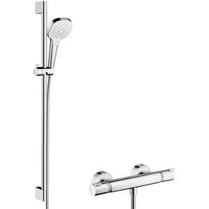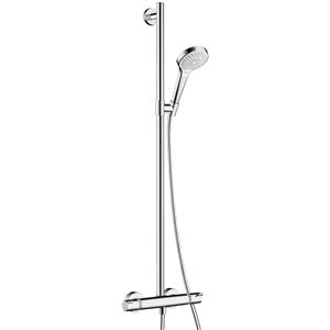 Hansgrohe Croma Select S Sistema Doccia Esterno con Termostatico Ecostat Comfort, Asta Doccia 90 cm, Soffione 110 mm, 3 Getti - Bianco/Cromo
