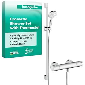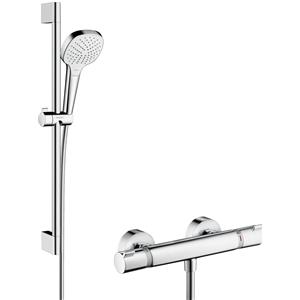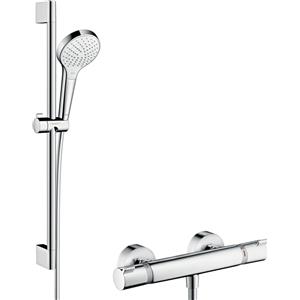 Hansgrohe Crometta Sistema Doccia Esterno Vario con Termostatico Ecostat 1001 CL, Asta Doccia 90 cm, Soffione 100 mm, Bianco/Cromo