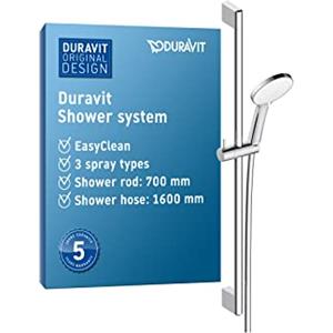 Duravit Universal Set Doccia con Asta Regolabile 700mm, 3 Tipi di Getto (Rain, Intense Rain, Soft Rain), Cromo/Bianco