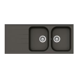 Schock Lithos D200 Lavello 2 Vasche 116 x 50 cm Sopratop/Sottotop con Gocciolatoio Reversibile in Cristalite® - Asphalt