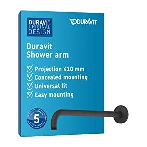 Duravit Braccio Doccia Universale Nero Opaco 41 cm - Montaggio a Parete, Attacco Universale