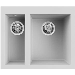 Elleci Lavello da Incasso Quadra 150 Sottotop 2 Vasche 56x44 cm in Granitek Bianco con Sifone Salvaspazio