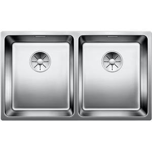 Blanco Andano Lavello da Cucina in Acciaio Inox 86.5x44 cm con Due Vasche 400/400 mm, Installazione Filo o Sopratop, Base Sottolavello 90 cm
