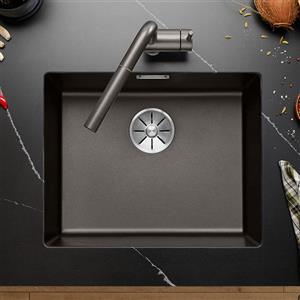 Blanco Subline 500-U Lavello da Cucina in Granito Grigio Vulcanico, 53x46 cm, Montaggio Sottostruttura, per Base Sottolavello da 60 cm