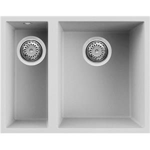 Elleci Lavello da Incasso Quadra 150 Sottotop 2 Vasche 56x44 cm in Granitek Bianco con Sifone Salvaspazio