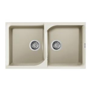 Elleci Ego 450 Lavello Montato su Piano Rettangolare in Granitek Bianco Antico, 2 Vasche, 86x50 cm