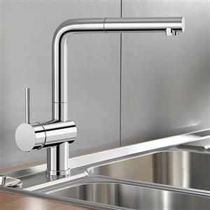 BLANCO LINUS-S 514016 - Rubinetto miscelatore da cucina con bocchetta estraibile, leva di comando a sinistra, alta pressione, cromato, altezza 28,4 cm, angolo di rotazione 140°
