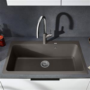 vidaXL Lavello da Cucina in Granito Grigio Rotondo con Vasca Singola Extra-Profonda