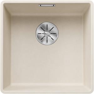 BLANCO Subline 400-F Lavello da Cucina in Silgranit Bianco Morbido, Adatto per Armadi da 50 cm, Installazione dal Basso o a Incasso