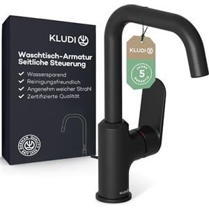 KLUDI X1 Rubinetto per Lavabo Girevole 360° in Nero Opaco con Scarico a Tirante e Risparmio d'Acqua