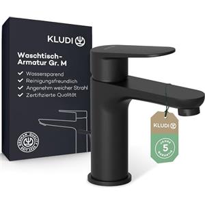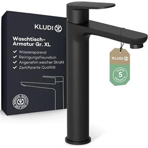 KLUDI X1 Rubinetto per Lavabo Nero Opaco con Scarico a Tirante, Altezza Beccuccio 95 mm, Risparmio Acqua e Cartuccia in Ceramica