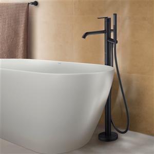 Duravit Balcoon Rubinetto a Pavimento per Vasca da Bagno, Miscelatore Monocomando in Nero Opaco con Sistema di Miscelazione in Ceramica e Supporto Doccia Integrato