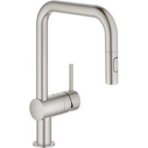 GROHE Minta Miscelatore Monocomando da Cucina con Doccetta Estraibile, Supersteel, 2 Getti, Bocca a U, Raggio di Rotazione 360°, Cartuccia in Ceramica da 46 mm - Cod. 32322DC2