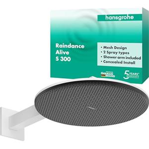 Hansgrohe Raindance Alive S Soffione Doccia Rotondo 30x30 cm Bianco Opaco con 2 Tipi di Getto