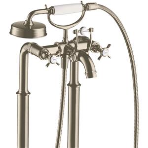 Hansgrohe Montreux Rubinetto Vasca a Pavimento in Nichel Spazzolato con Miscelatore a Due Maniglie e Doccia RainAir