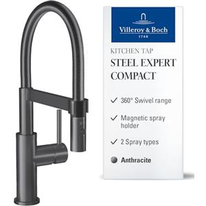 Villeroy & Boch Steel Expert Compact - Rubinetto da cucina alta pressione con doccetta estraibile, canna orientabile, colore anthracite