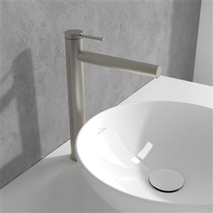 Villeroy & Boch Loop & Friends Rubinetto Lavabo Rialzato Nichel Spazzolato Opaco, Miscelatore a Risparmio Idrico con Altezza Bocca di Erogazione 251mm