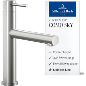 Villeroy & Boch Rubinetto da Cucina Como Sky in Acciaio Inossidabile Spazzolato, Orientabile con Getto Comfort e Aeratore Regolabile