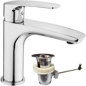 Parama Miscelatore Lavabo Alto Monocomando in Ottone Cromato - Design Tondeggiante Moderno con Scarico Automatico