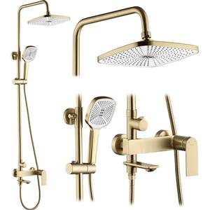 Rea Storm Set Doccia e Vasca Oro Spazzolato - Sistema Trifunzionale in Ottone con Soffione a Pioggia