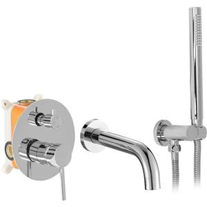 Rea Rubinetto Lungo da Incasso per Vasca in Cromo con Miscelatore e Doccetta Orientabile in Ottone