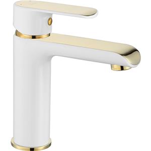 Rea Bloom Rubinetto per Lavabo Verticale Bianco-Oro in Ottone con Miscelatore Monocomando e Aeratore