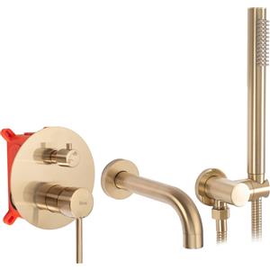Rea Lungo Rubinetto Vasca da Incasso in Ottone Oro Spazzolato con Miscelatore Ceramico e Doccetta Orientabile