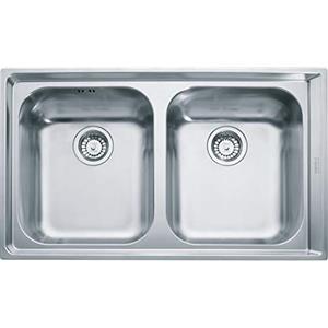 Franke NEX 220 Lavello Montato su Piano Rettangolare in Acciaio Inox Satinato con 2 Vasche - Dimensioni 86 x 51 cm