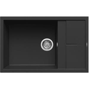 Elleci Unico 310 Lavello Montato su Piano Rettangolare 1 Vasca con Gocciolatoio Reversibile in Keratek Plus Nero - 78x50 cm