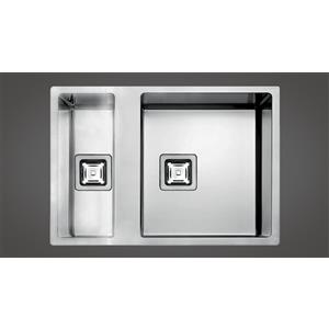 Fulgor Lavello Inox P2B 5545 Q F-SF - Doppia Vasca Asimmetrica 56x45 cm, Installazione Filotop e Semifilo