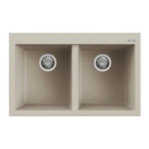 Elleci Quadra 350 Lavello montato su piano Rettangolare in Keratek Plus Champagne, 2 Vasche, 79x50 cm