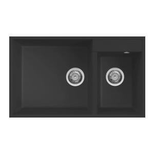 Elleci Quadra 440 Lavello Montato su Piano Rettangolare in Granitek Nero con 2 Vasche - Dimensioni 815x500 mm