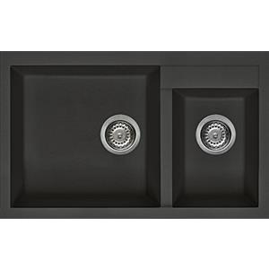 Elleci Quadra 440 Lavello Montato su Piano Rettangolare in Granitek Nero con 2 Vasche - Dimensioni 815x500 mm