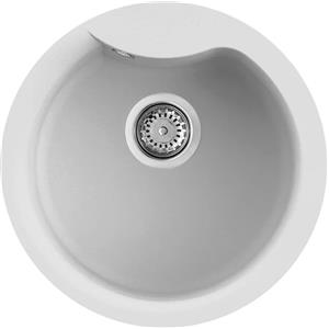 Elleci Ego Round Lavello Circolare 1 Vasca Montato su Piano in Granitek Bianco - Diametro 485 mm