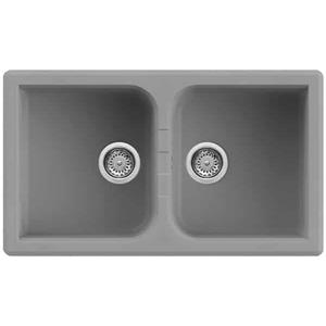 Quareco Lavello da Incasso 2 Vasche in Granito Grigio 86x50 con Protezione Antibatterica - Modello Prime 862