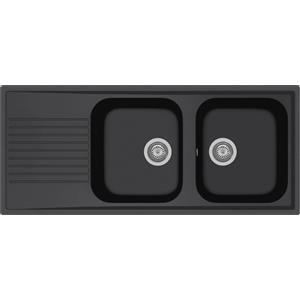Elleci LIFE 500 Lavello da Incasso 2 Vasche Reversibile con Gocciolatoio, 116x50 cm, Granitek Nero