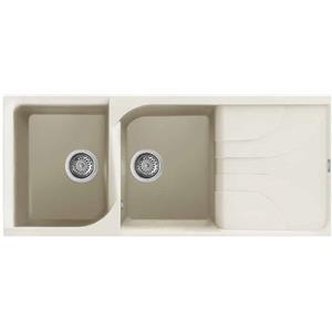 Elleci Ego 500 Lavello Incasso 2 Vasche 116 x 50 cm Granitek Bianco Antico con Gocciolatoio Reversibile