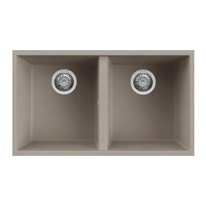 Elleci Quadra 350 Lavello Sottopiano Rettangolare in Granitek Tortora con 2 Vasche e Sifone Salvaspazio