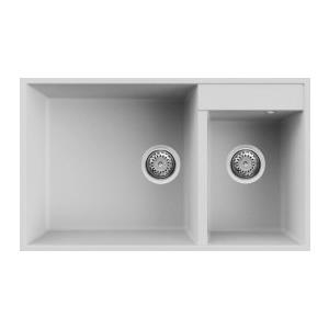 Elleci LGQ35068BSO Lavello Montato su Piano Rettangolare in Granitek Bianco con 2 Vasche e Sifone Salvaspazio