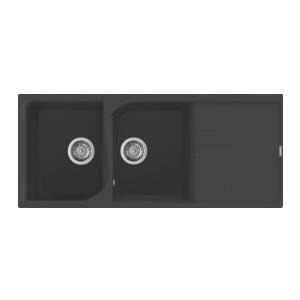 Elleci Ego 500 Lavello Montato su Piano Rettangolare in Granitek Antracite con 2 Vasche e Gocciolatoio Reversibile