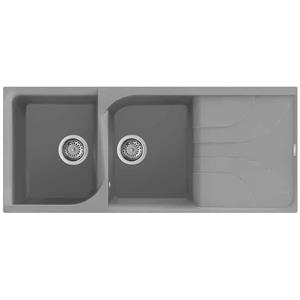 Elleci Ego 500 Lavello Montato su Piano Rettangolare in Granitek Cemento con 2 Vasche e Gocciolatoio Reversibile
