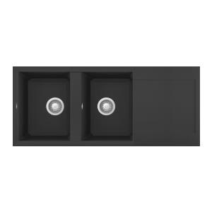 Elleci Easy 500 Lavello da Incasso 2 Vasche con Gocciolatoio Reversibile in Granitek Nero 40 - Dimensioni 116x50 cm