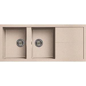 Elleci Ego 500 Lavello Incasso 2 Vasche con Gocciolatoio Reversibile in Granitek Avena - 116x50 cm in Lavelli e Rubinetti