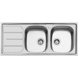 Foster Lavello S1000 116x50 cm, 2 Vasche a Sinistra con Gocciolatoio a Destra, Acciaio Inox Spazzolato, Cod. 1812162