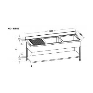 FIMAR GD186BR2 Lavello aperto in acciaio inox AISI 304 con 2 vasche a destra, dimensioni 1800 x 600 x 950h