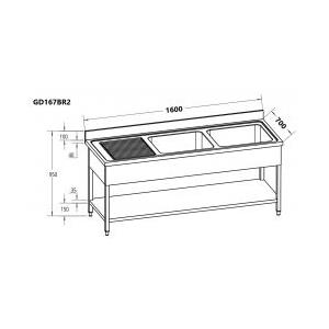 FIMAR GD167BR2 Lavello aperto in acciaio inox AISI 304 con 2 vasche a destra, dimensioni 1600 x 700 x 950h