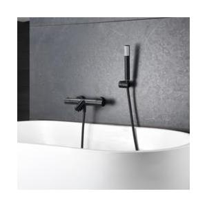 DEGHI Miscelatore Esterno Vasca in Ottone con Doccino Nero Opaco - Design Elegante e Funzionalità Termostatica