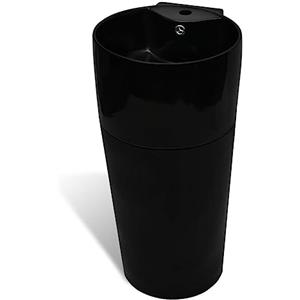 vidaXL Lavandino Rotondo in Ceramica Nera con Foro di Trabocco e Rubinetto - Elegante Lavabo da Appoggio