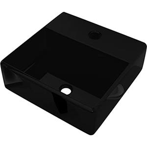 vidaXL Lavandino Bagno in Ceramica Nera Quadrato con Foro per Rubinetto e Piletta di Scarico